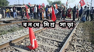 জলপাইগুড়ি রোড স্টেশন চত্বরে রেল লাইন অবরোধ বনধ সমর্থকদের