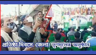 দলের প্রতিষ্ঠাবার্ষিকী উপলক্ষে কেকও কাটেন জেলা তৃণমূল সভাপতি । পরে জেলা তৃণমূলের পক্ষ থেকে শহরের অনুভব হোমের আবাসিক দের হাতে ফল ও শুকনো খাবার তুলে দেওয়া হয় ।