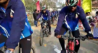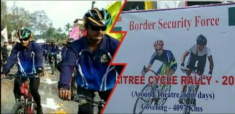 প্রদ্যুৎ দাস, জলপাইগুড়ি,২৫জানুয়ারি : সোমবার ভারত-বাংলাদেশ মৈত্রী সাইকেল র‍্যালি এসে পৌঁছাল জলপাইগুড়ি জেলার বেরুবাড়ি সীমান্তে । র‍্যালির সূচনা হয়েছিল গত ১০ই জানুয়ারি উত্তর চব্বিশ পরগনার পানিতর সীমান্তে । ৬৬ দিনে দুই দেশের সীমান্ত ধরে চার হাজার সাতানব্বই কিলোমিটার পথ পাড়ি দিয়ে আগামী ১৭ ই মার্চ ভারত-বাংলাদেশ মৈত্রী সাইকেল র‍্যালির সমাপ্তি হবে মিজোরামের সিলকোর সীমান্তে । সেদিন বাংলাদেশের স্থপতি বঙ্গবন্ধু মুজিবুর রহমানের জন্ম শতবার্ষিকী । বর্ডার সিকিউরিটি ফোর্সের উদ্যোগে আয়োজিত এই মৈত্রী সাইকেল র‍্যালিতে সহযোগিতার হাত বাড়িয়ে দিয়েছে বাংলাদেশের বিজিবিও । ১৭জন বিএসএফ জওয়ানদের পাশাপাশি বিজিবি জ‌ওয়ানেরাও মৈত্রী র‍্যালিতে অংশ নিয়েছেন । এদিন সাইকেল যাত্রীরা বেরুবাড়ি সীমান্তে এসে পৌঁছালে তাদের স্বাগত জানান বিএসএফের ২১ নম্বর ব্যাটেলিয়ন । ভাঙরা নৃত্য , শঙ্খনাদের মাধ্যমে অভিযাত্রীদের স্বাগত জানানো হয় । এই উপলক্ষে বেরুবাড়ি সীমান্তের চাণক্য বিওপিতে ।