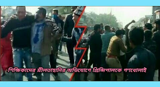 প্রদ্যুৎ দাস, বিন্নাগুড়ি,১৮ জানুয়ারি : স্কুলের শিক্ষিকাদের যৌন নিগ্রহ এবং সেই ভিডিও ভাইরাল করার অভিযোগে একটি বেসরকারি ইংরেজি মাধ্যম স্কুলের অধ্যক্ষকে গণধোলাই ও মুখে কালি মাখিয়ে রাস্তায় হাঁটালো জনতা । পরে ঘটনাস্থলে এসে অভিযুক্তকে উদ্ধার করে থানায় নিয়ে যায় পুলিশ। সোমবার দুপুরে এই ঘটনা ঘটল জলপাইগুড়ি জেলার বানারহাট থানার বিন্নাগুড়ি এলাকায় ।