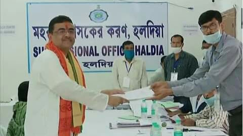 মনোনয়নপত্র জমা দিচ্ছেন শুভেন্দু অধিকারী । |