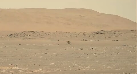 মঙ্গল গ্রহের আকাশে হেলিকপ্টার ওড়ার ছবি সোমবার গ্রিনিচ সময় রাত ৩টা ৩৪ মিনিটে নাসার নিয়ন্ত্রণ কক্ষে এসে পৌঁছানোর সাথে সাথেই উল্লাসে ফেটে পড়েন বিজ্ঞানীরা । মঙ্গল গ্রহের মাটি থেকে পারসিভেয়ারেন্স রোভার যানের ক্যামেরায় তোলা সেই ছবি মঙ্গলের কক্ষপথে প্রদক্ষিণরত উপগ্রহের মাধ্যমে পৃথিবীতে এসে পৌঁছায় । এক দশমিক আট কেজি ওজনের হেলিকপ্টারটি মঙ্গল পৃষ্ঠ থেকে তিন মিটার উচ্চতায় উঠে চল্লিশ সেকেন্ড ওড়ার পর সফলভাবেই অবতরণ করতে পেরেছে বলে নাসার পক্ষ থেকে জানানো হয়েছে ।