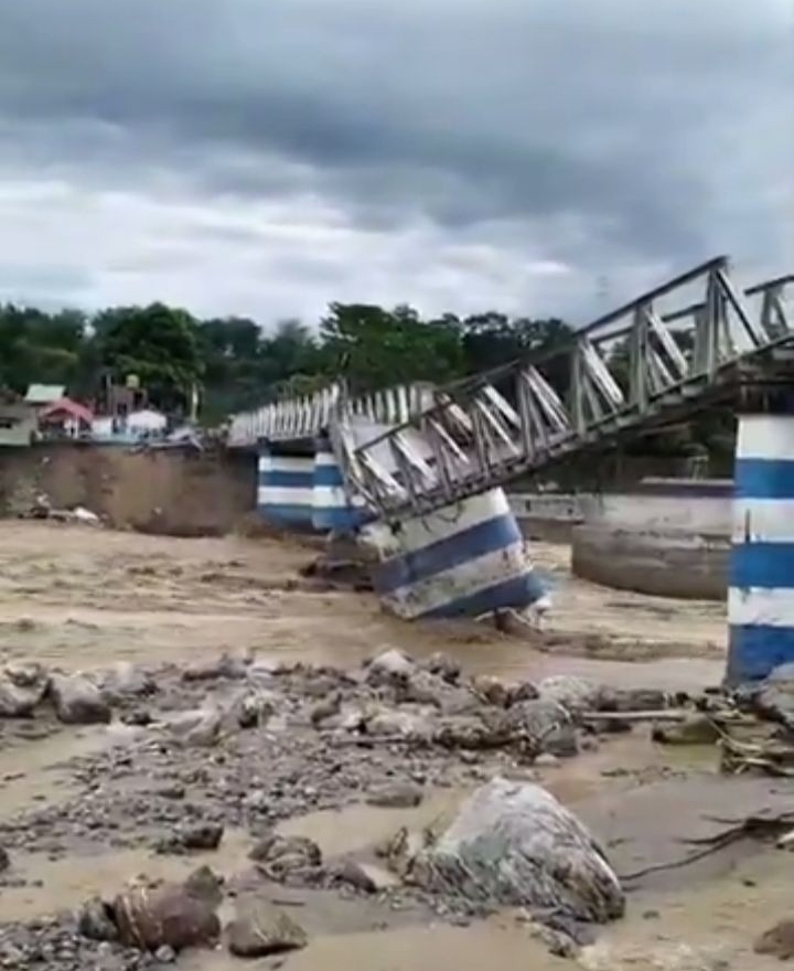 মিরিকের দুধিয়ায় জলস্রোতে বালাসন নদীর উপর ভেঙে পড়া সেতু। সংগৃহীত ফটো