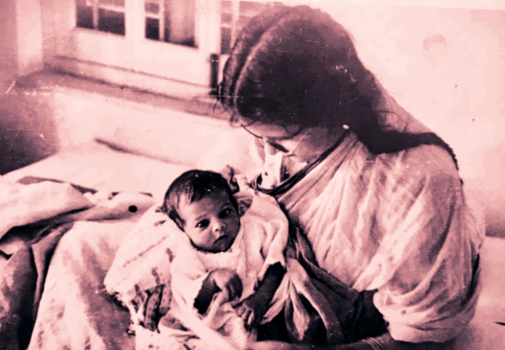 মা রাধারানি দেবীর কোলে শিশু নবনীতা। ছবি: সংগৃহীত