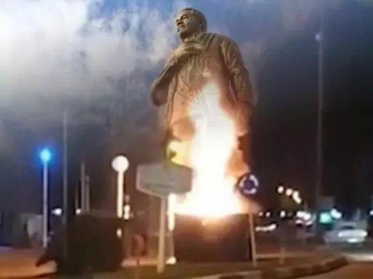 ফার্স প্রদেশে ইসলামিক রেভল্যুশনারি গার্ডের এলিট উইংস কুদস ফোর্সের প্রাক্তন প্রধান কাসেম সোলাইমানির স্ট্যাচু উপড়ে ফেলে দিয়েছেন বিক্ষোভকারীরা। ২০২০ সালের ৩ জানুয়ারি বাগদাদে আমেরিকার করা ড্রোন হামলায় জেনারেল সোলাইমানি নিহত হয়েছিলেন। জেনারেল কাসেম সোলাইমানিকে বীর সেনানায়কের মর্যাদা দেয় ইসলামিক প্রজাতান্ত্রিক ইরান। কিন্তু ইরানের জনগণের চোখে ইজরায়েল ও আমেরিকার হাতে নিহত এই বীর জেনারেলরাও ভিলেন ছাড়া আর কিছু নয়।