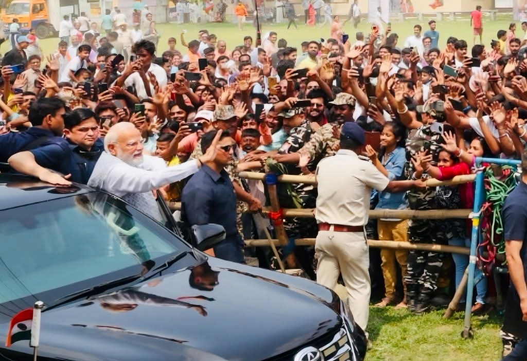 সোমবার ভোটের শেষ প্রচারে ব্যারাকপুরে সভায় যাওয়ার পথে প্রধানমন্ত্রী নরেন্দ্র মোদী। সংগৃহীত ফটো